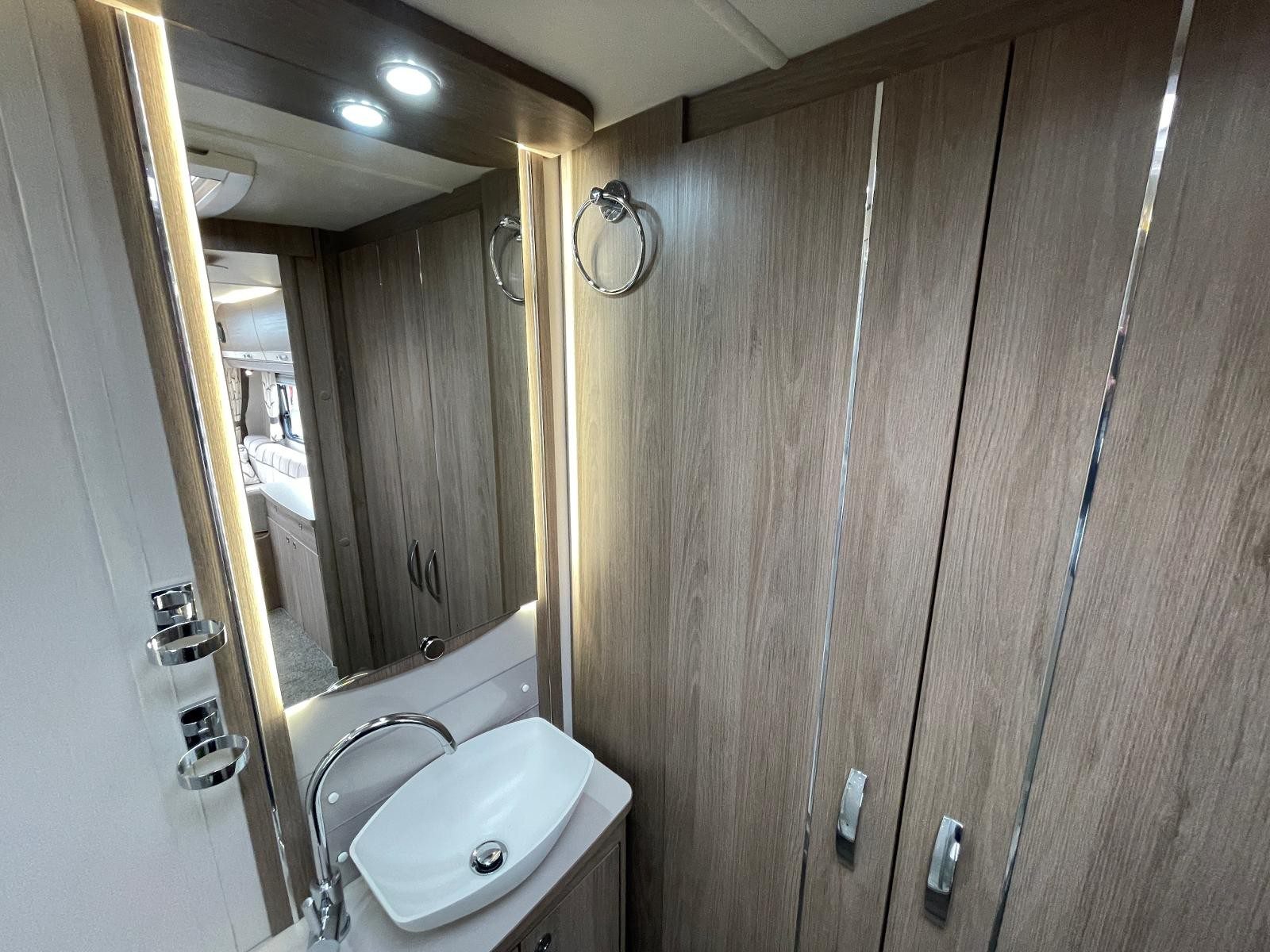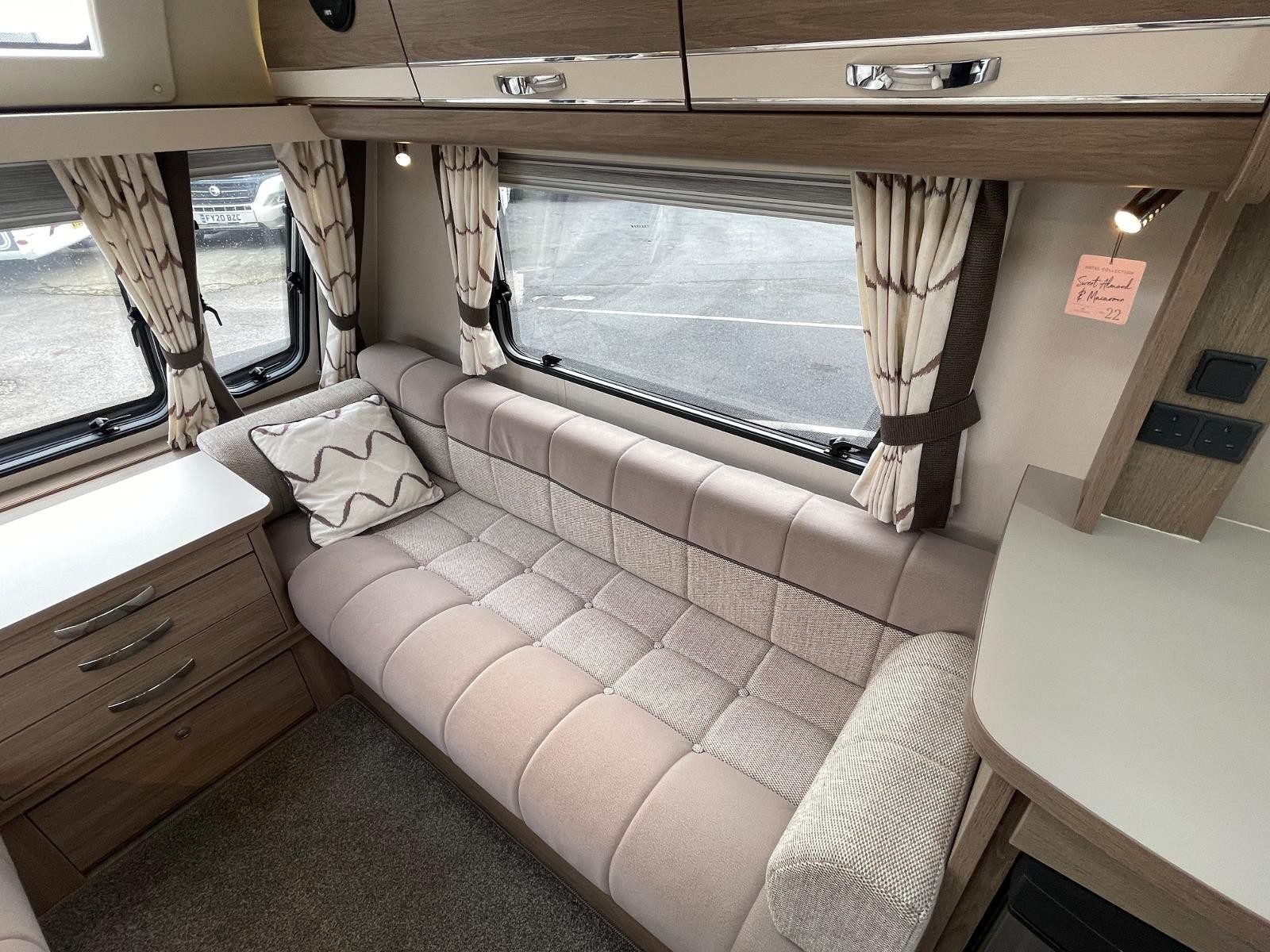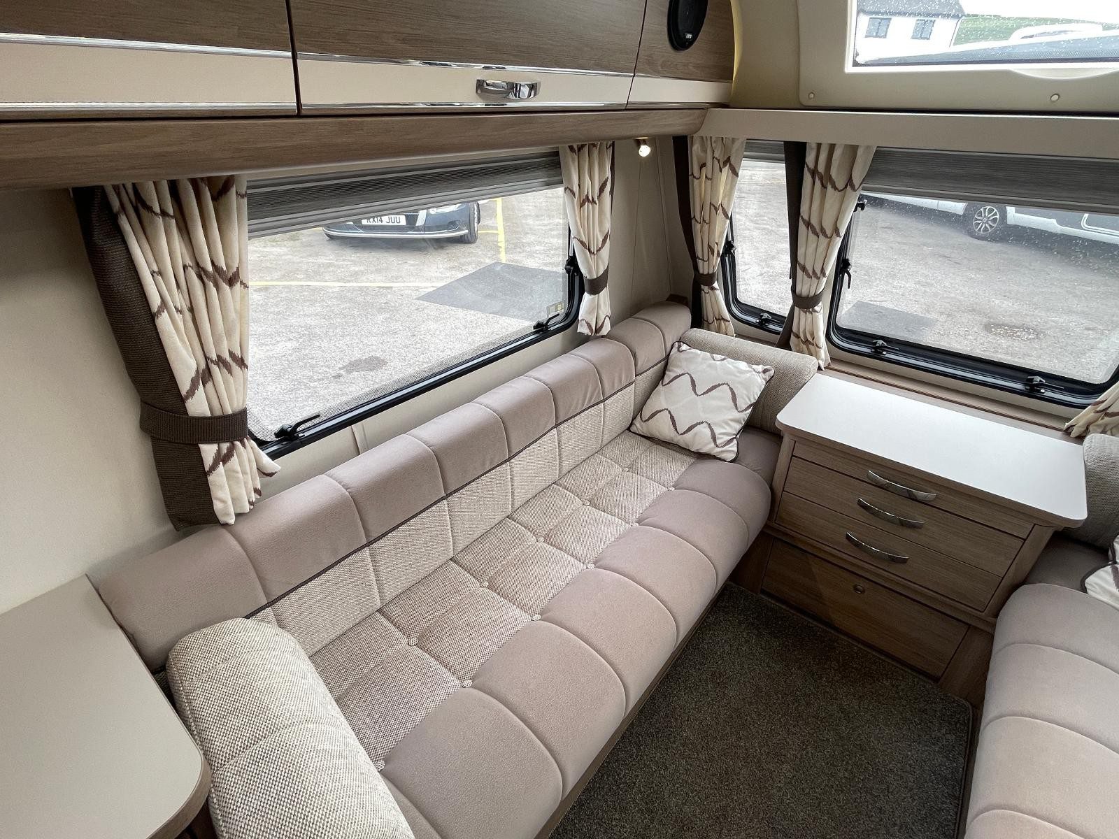Lounge: Twin settees with central chest of drawers, large front rooflight & sunroof, plus LED lighting for a bright, spacious feel