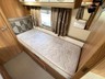 Layout: Fixed single beds, front lounge converts to a double, centre kitchen, large full-width rear washroom with separate shower