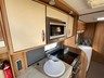 Kitchen: Full Thetford cooker, microwave, tall slimline 3-way fridge/freezer, stainless steel sink