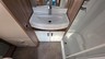 Full-width rear washroom with separate shower, vanity unit & electric flush toilet