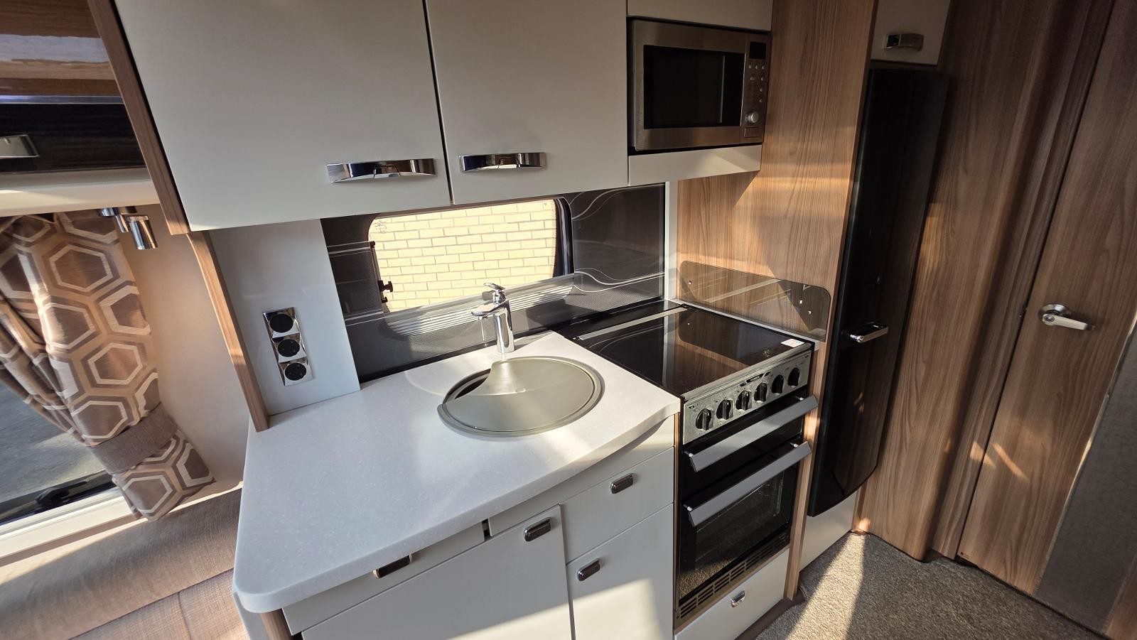 | Equipment | 12V Lighting, 240V Lighting, Blinds, Central Heating, Cooker, Double Glazing, Grill, Mains Hookup, Microwave, Oven, Separate Shower, Sink, Sunroof, TV Aerial |