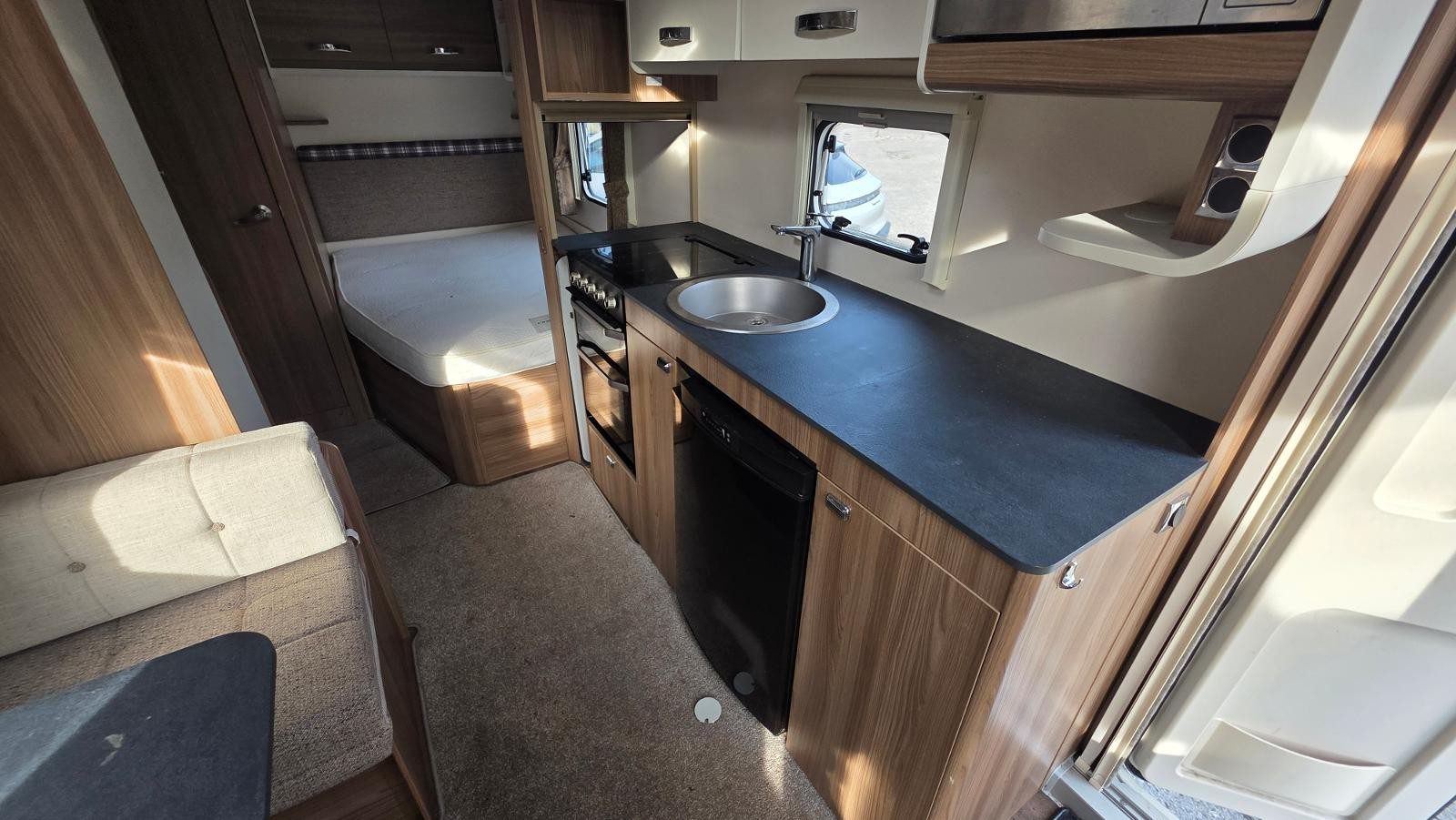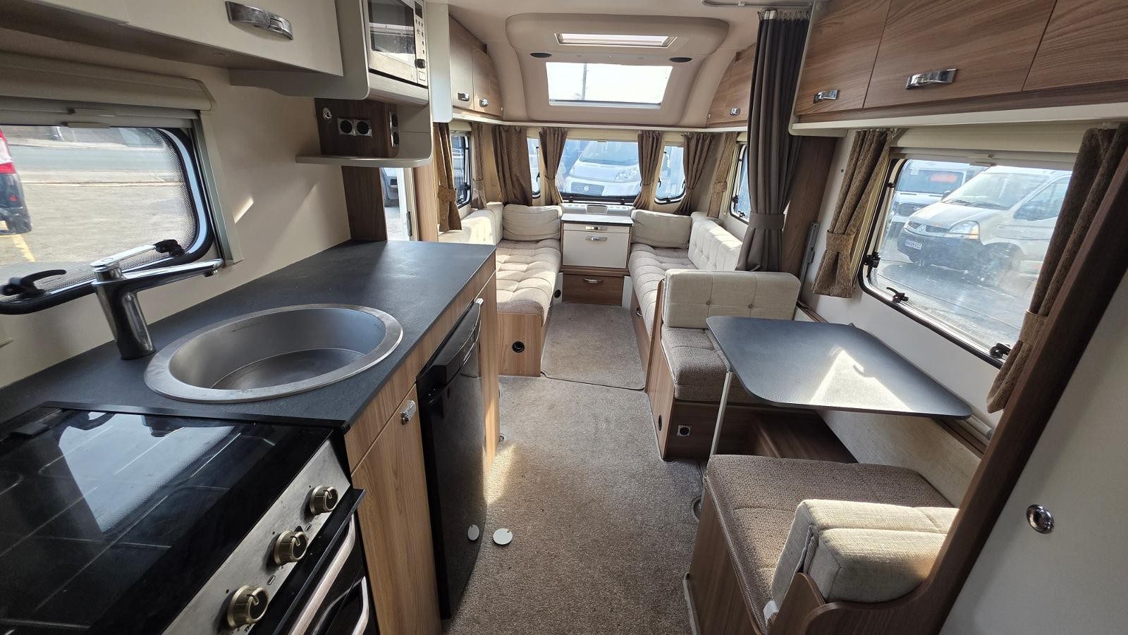 | Equipment | 12V Lighting, 240V Lighting, Awning, Blinds, Central Heating, Cooker, Double Glazing, Fixed Double Bed, Grill, Hand Washbasin, Mains Hookup, Microwave, Oven, Sink, Sunroof, TV Aerial |