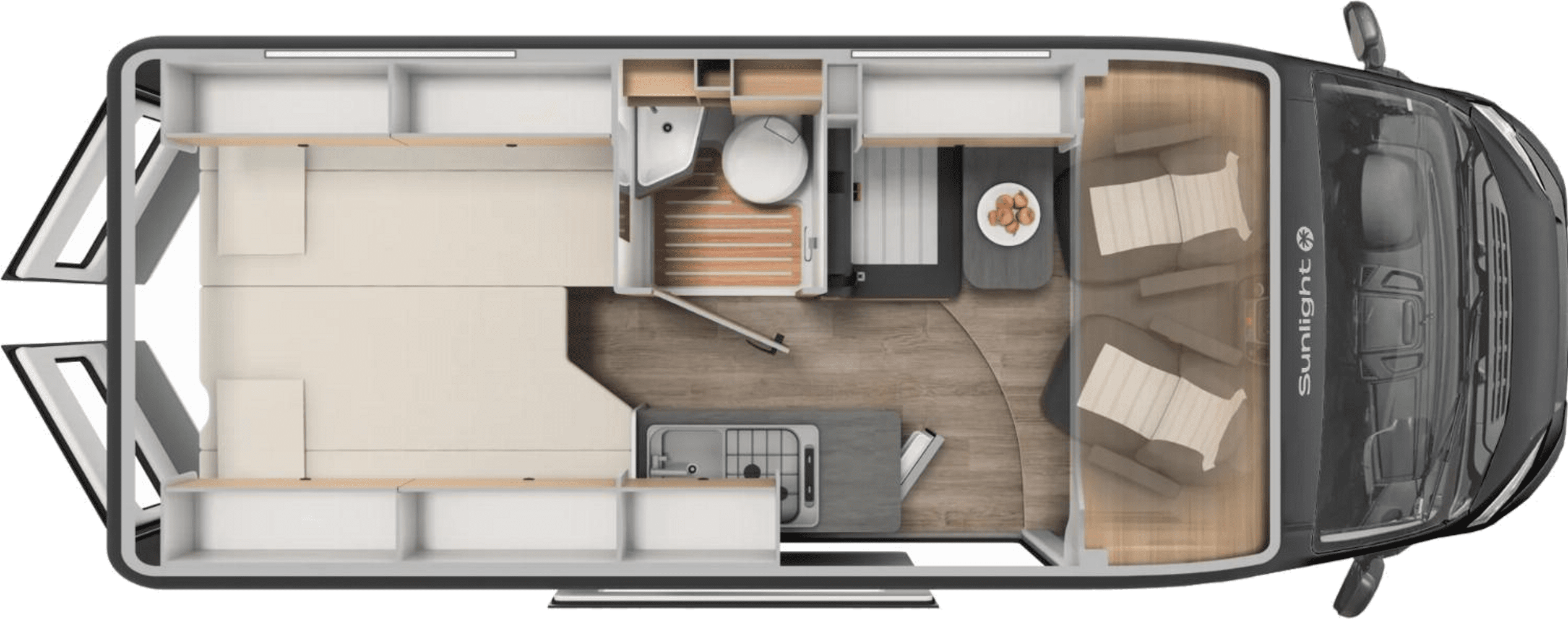 3/4 berths with transverse rear double bed + dinette bed conversion pack