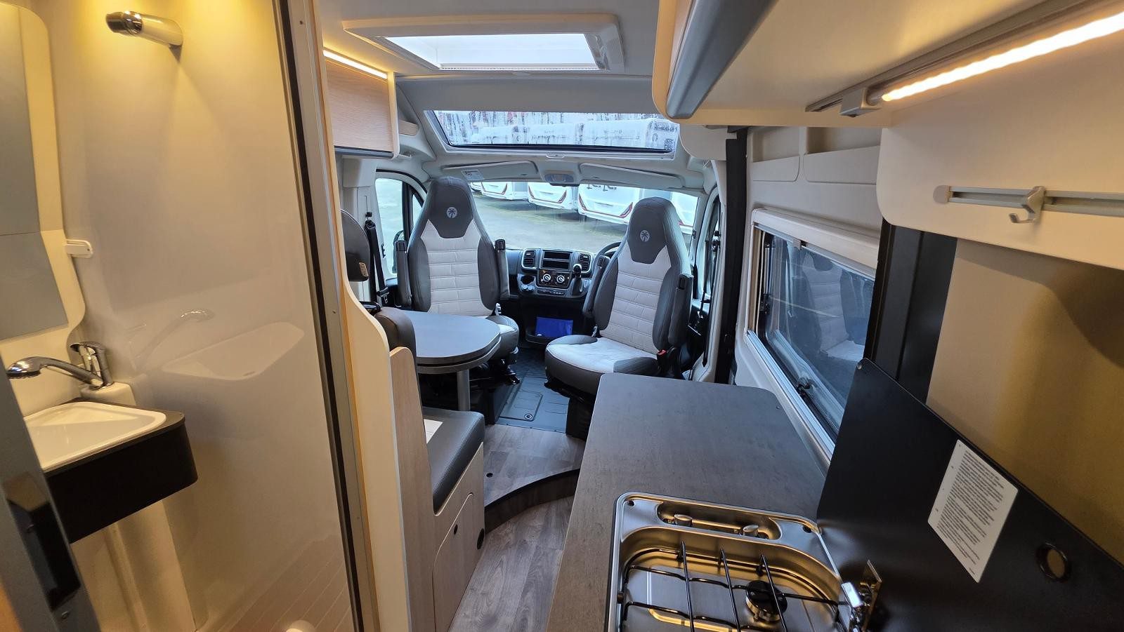 | Equipment | 12V Lighting, 240V Lighting, Awning, Blinds, Central Heating, Double Glazing, Fixed Double Bed, Hand Washbasin, Mains Hookup, Oven, Sink, Solar System, Sunroof |