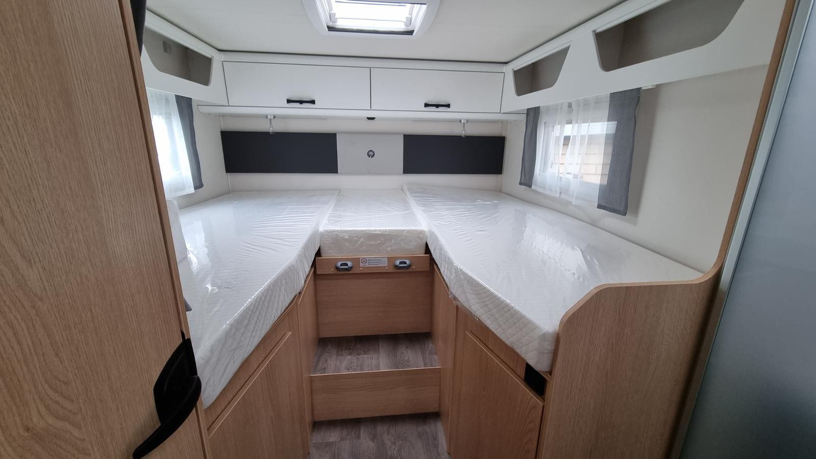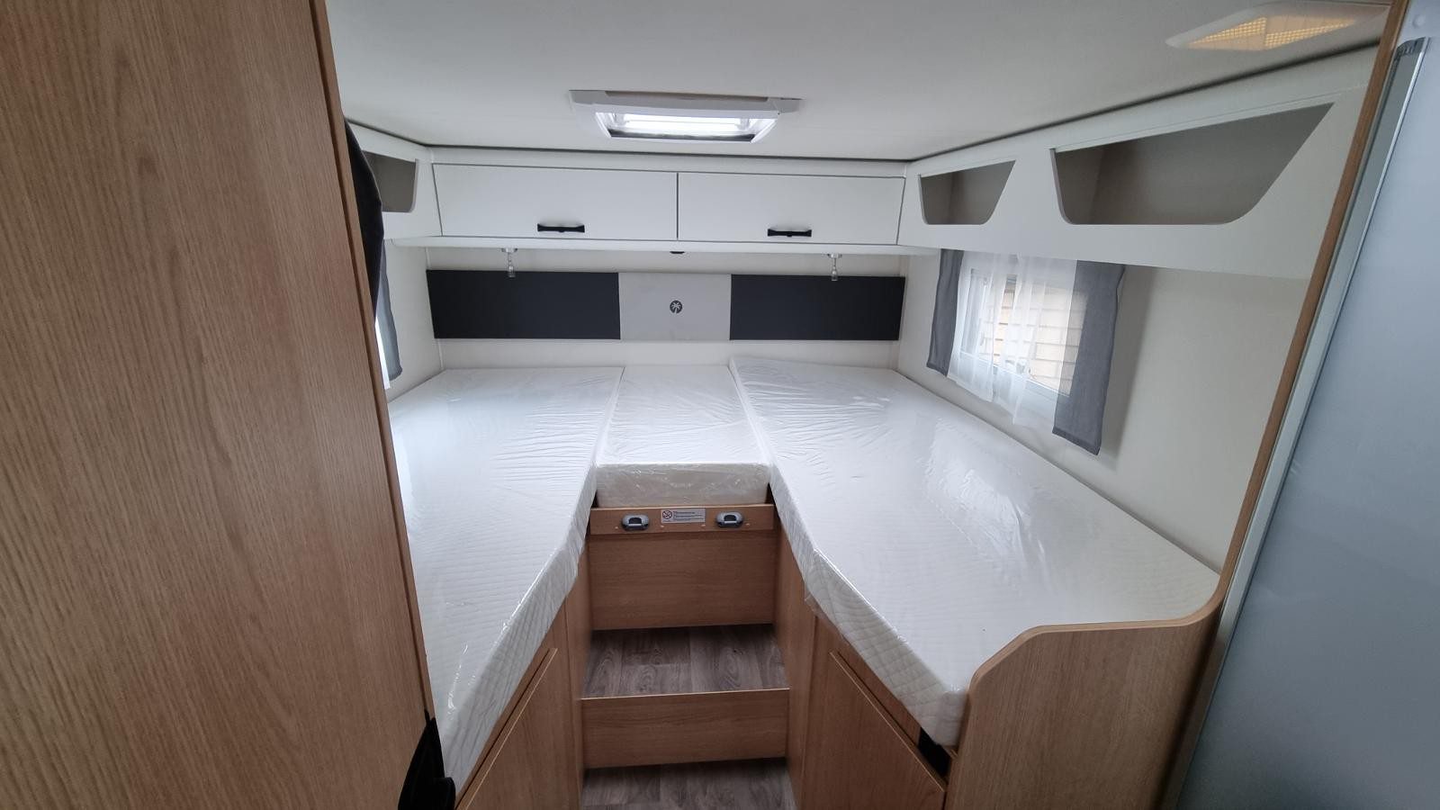 Equipment | 12V Lighting, 240V Lighting, Awning, Blinds, Central Heating, Cooker, Double Glazing, Fixed Double Bed, Grill, Hand Washbasin, Mains Hookup, Oven, Separate Shower, Sink, Solar System |