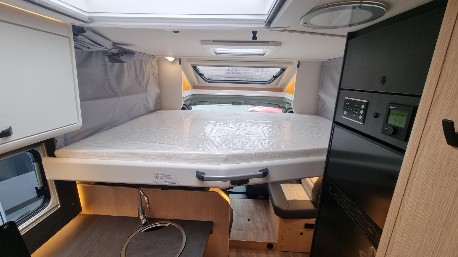 Pull-down bed over lounge – 4 berths in total with 4 seat belts