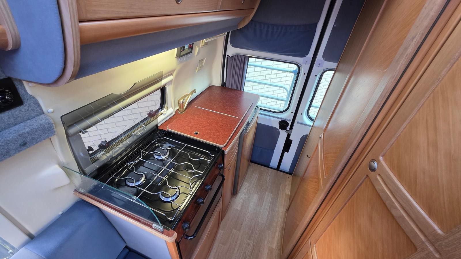 | Equipment | 12V Lighting, 240V Lighting, Awning, Blinds, Central Heating, Cooker, Double Glazing, End Kitchen, Grill, Hand Washbasin, Mains Hookup, Oven, Sink, Solar System, TV Aerial |