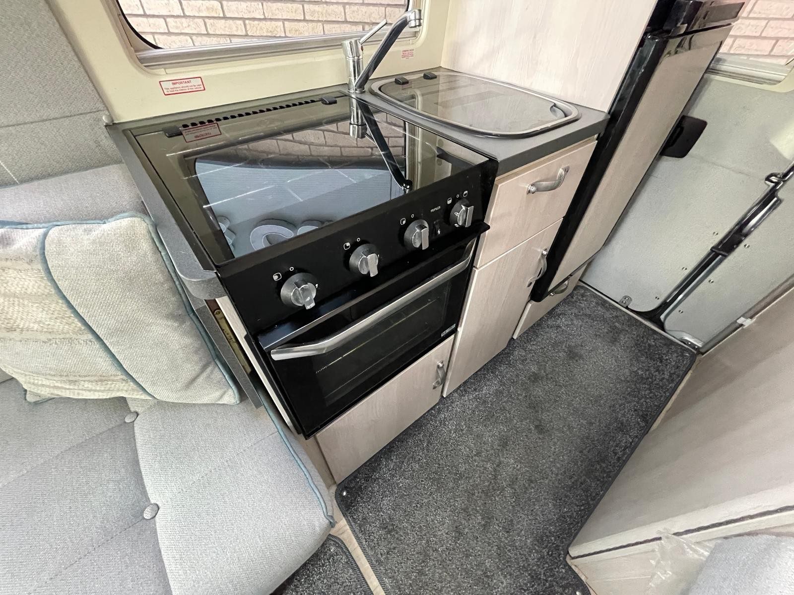 Kitchen: 3-burner gas hob, oven/grill, microwave, 3-way fridge