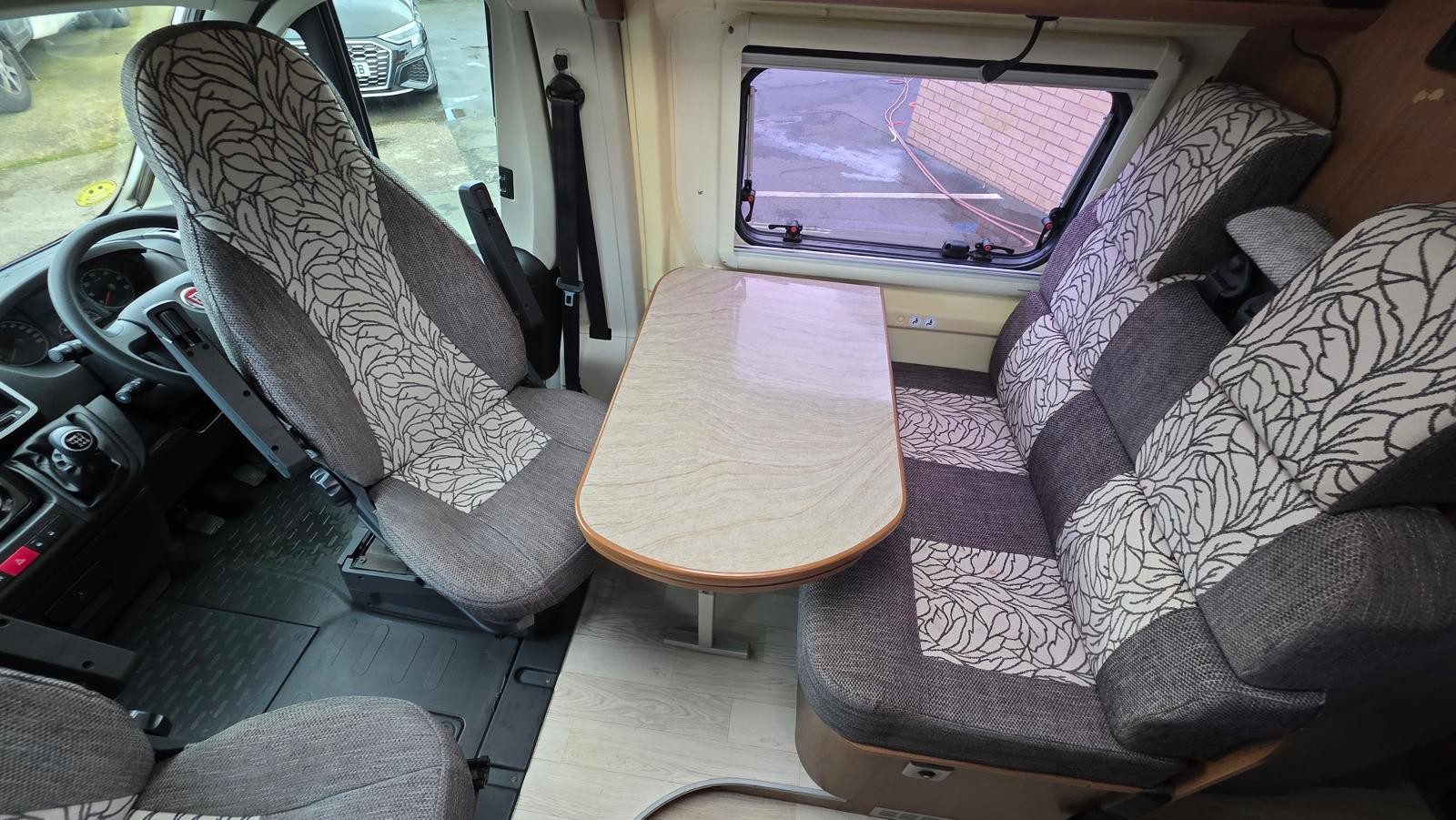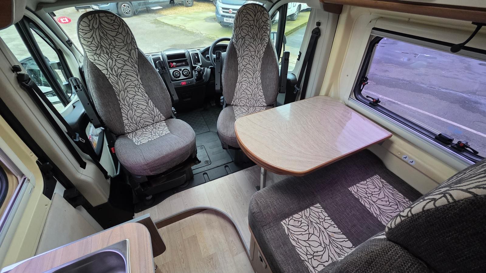 Front dinette with swivel cab seats – doubles as dining area and travel seats