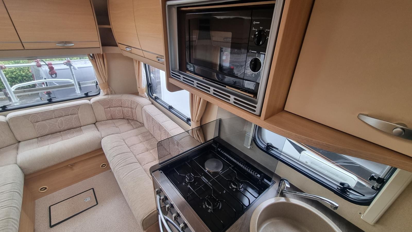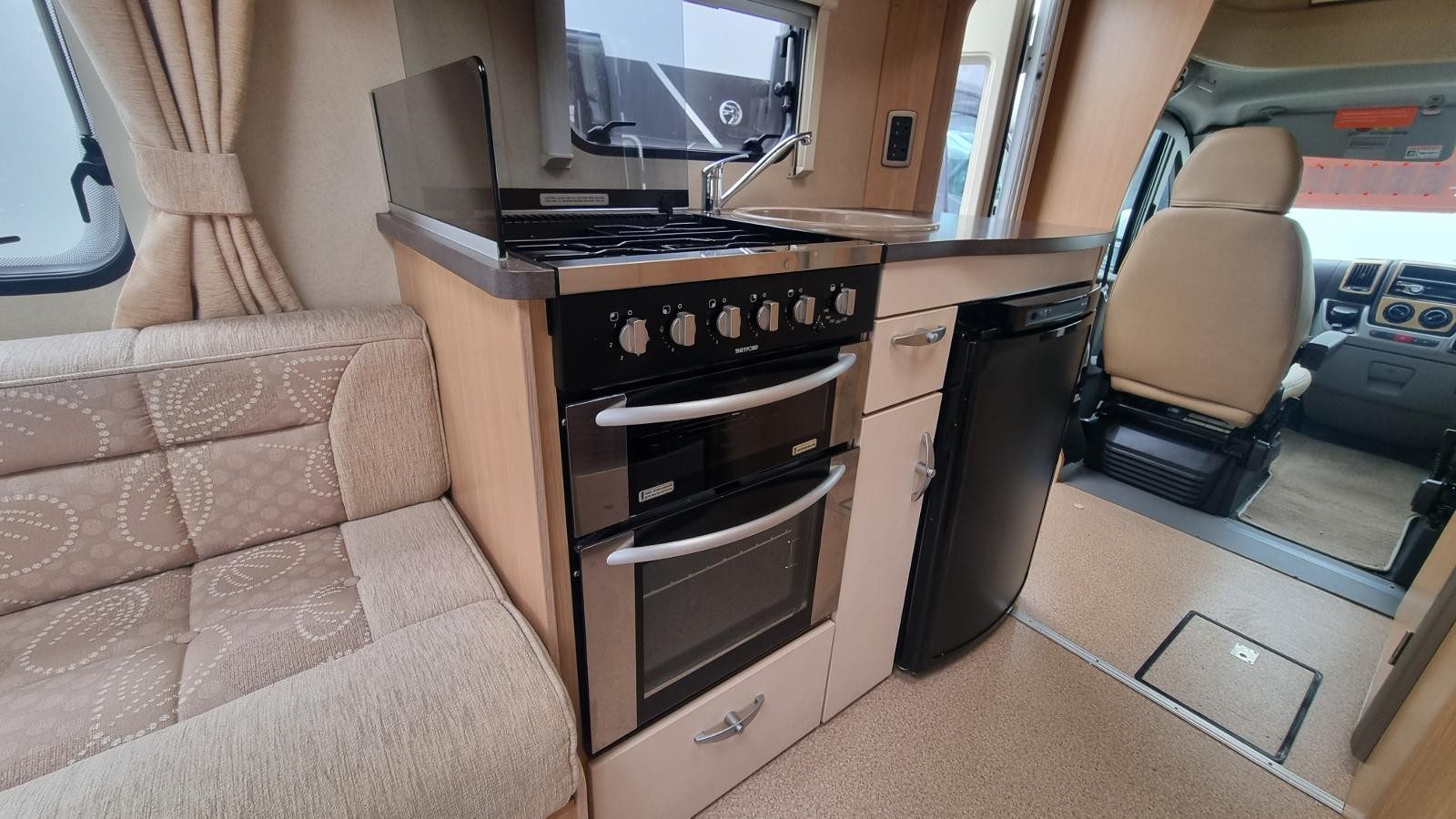 Kitchen: Dual-fuel hob, oven, grill, microwave, sink & 3-way fridge