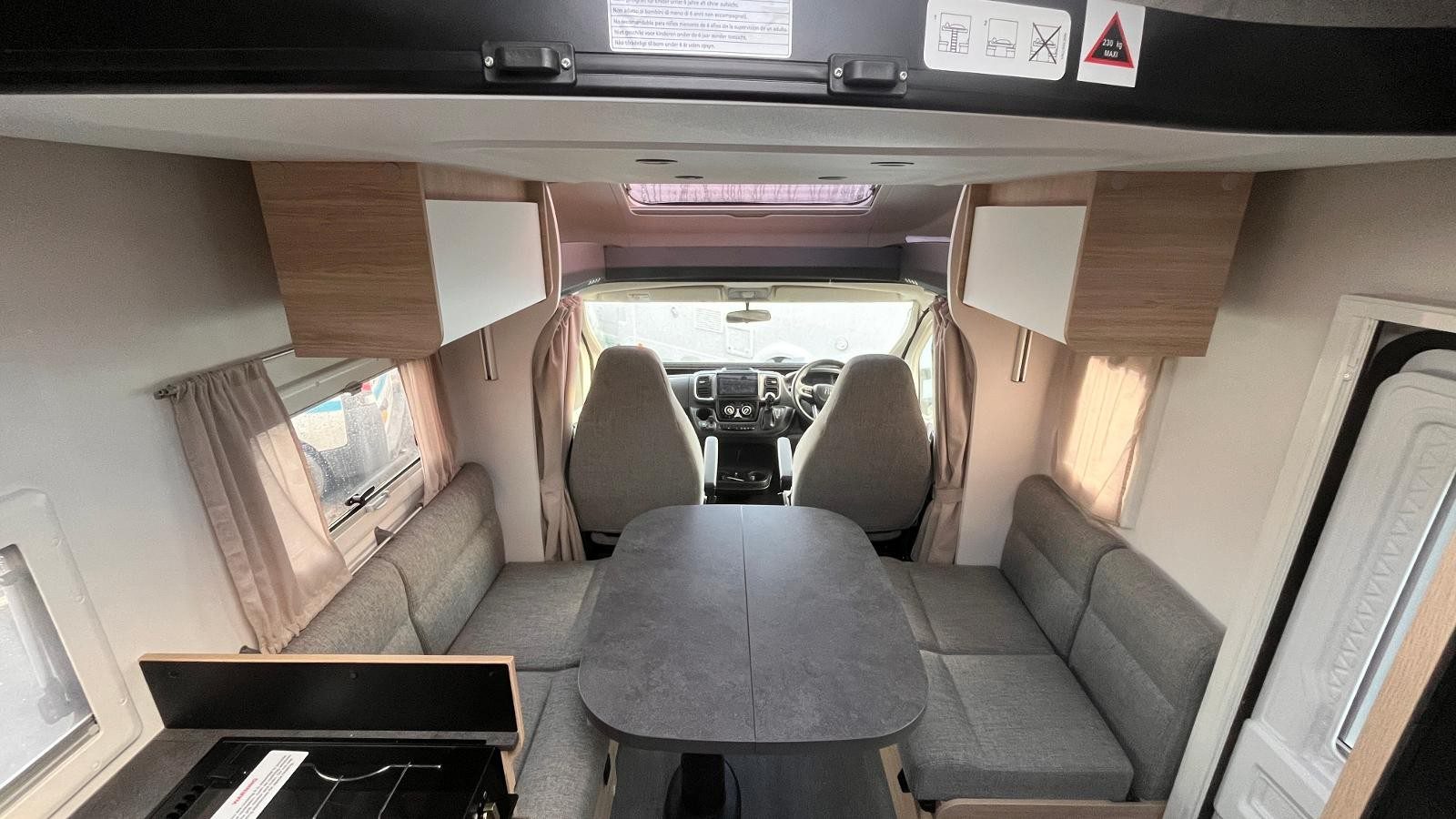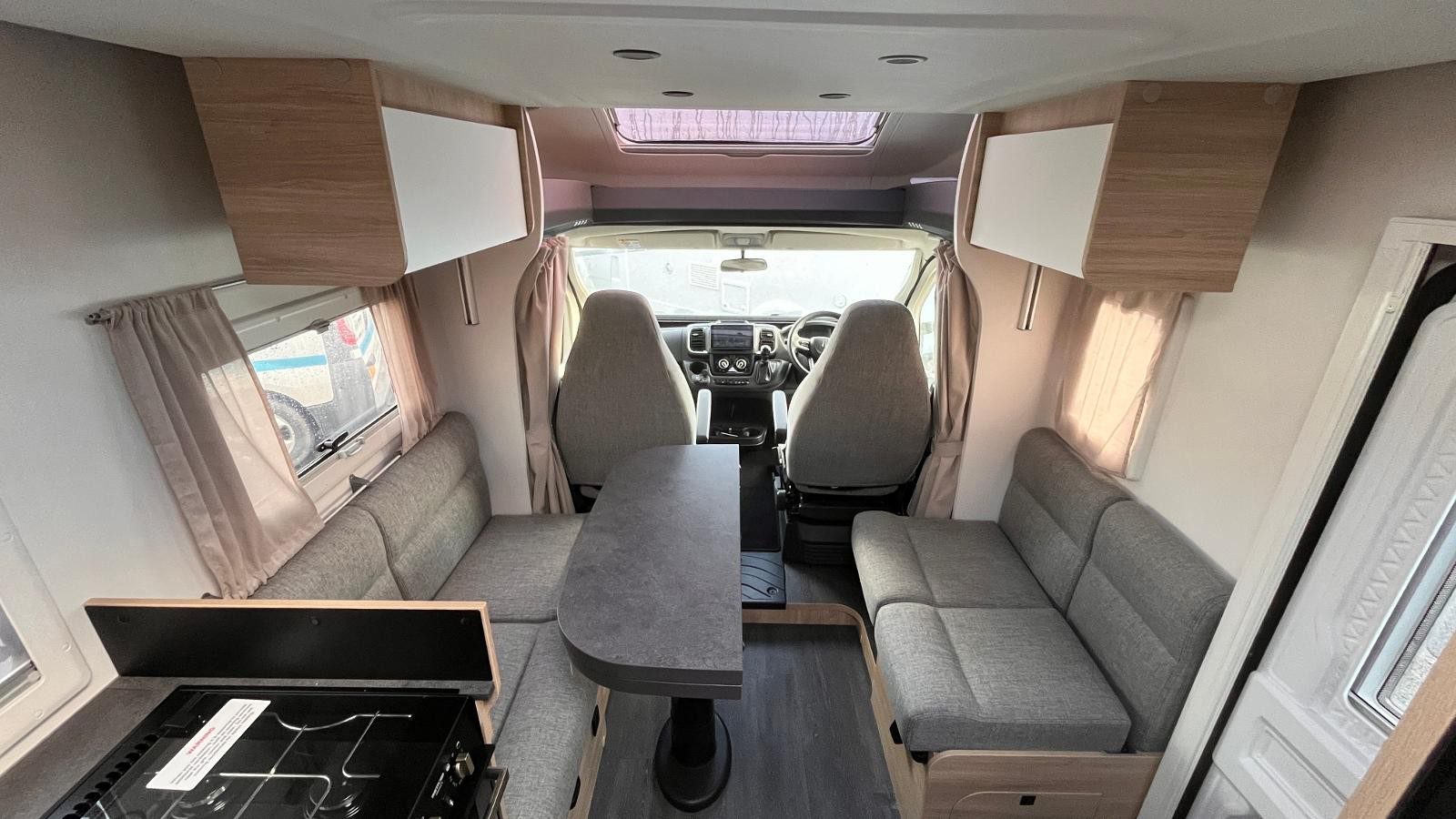 12V Lighting, 240V Lighting, Air Conditioning, Alarm, Awning, Blinds, Central Heating, Central Seating Group, Cooker, Double Glazing, External Side Lockers, Fixed Double Bed, Grill, Hand Washbasin, Mains Hookup, Oven, AM/FM Stereo, Round Seating Group, Separate Shower, Sink, Solar System, TV Aerial, Bluetooth Audio Streaming, USB Docking, Digital Radio, Bluetooth Telephone