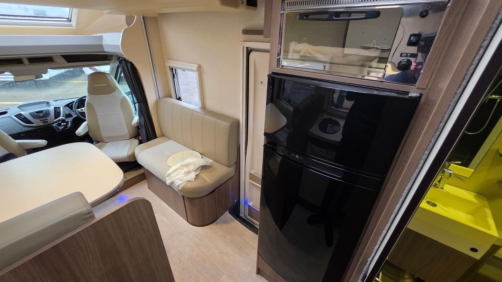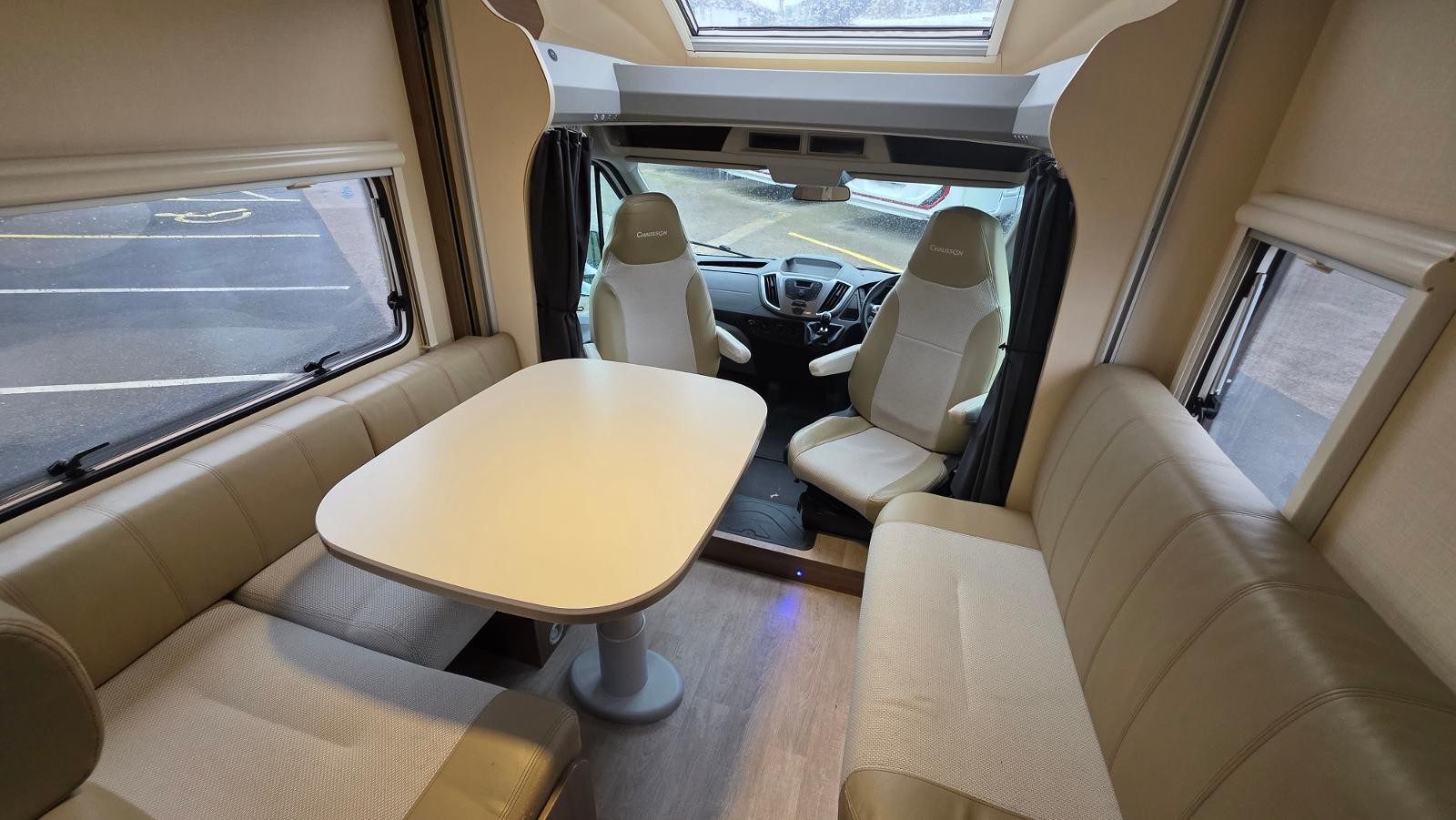 Spacious front lounge with swivel cab seats