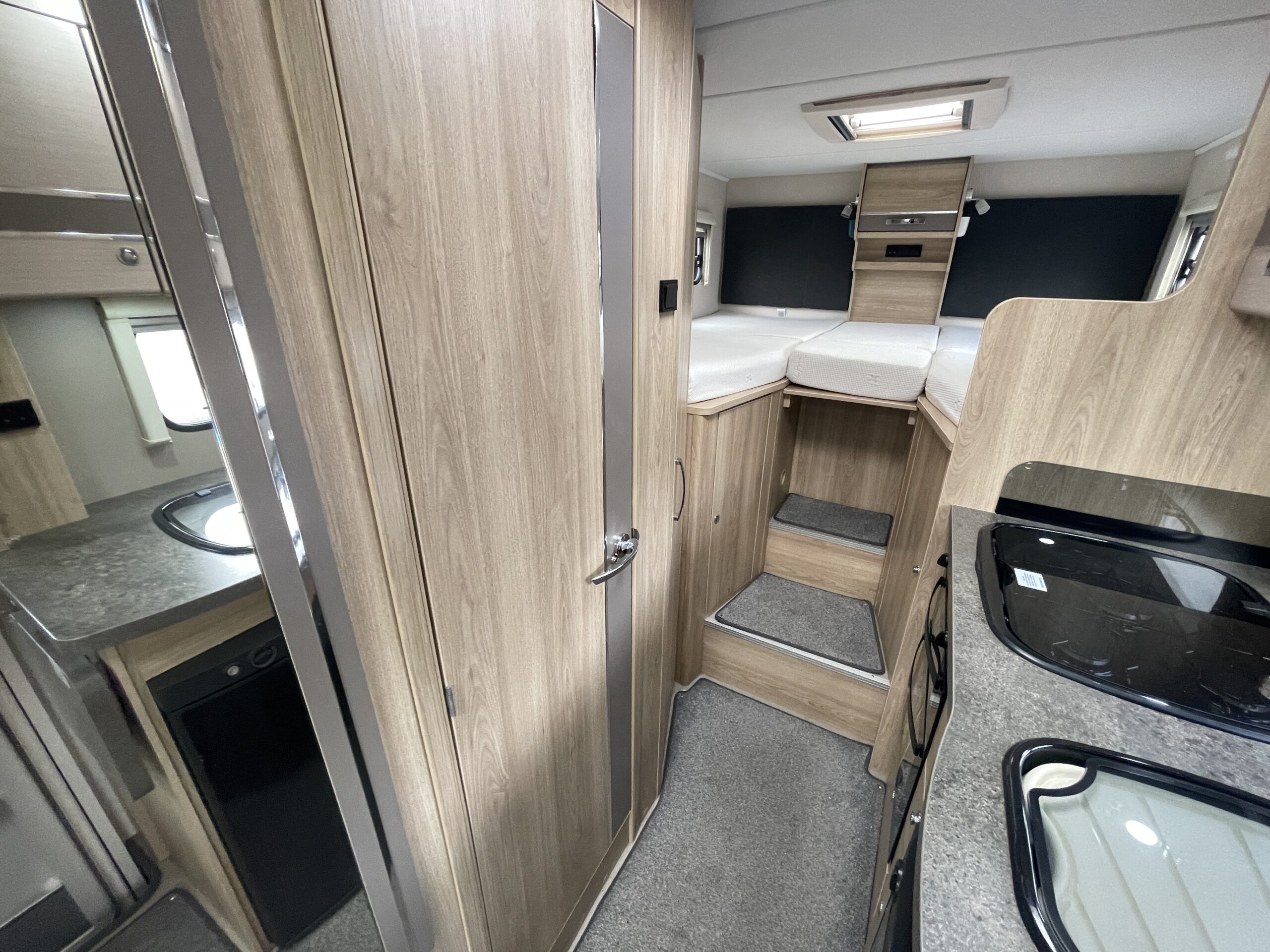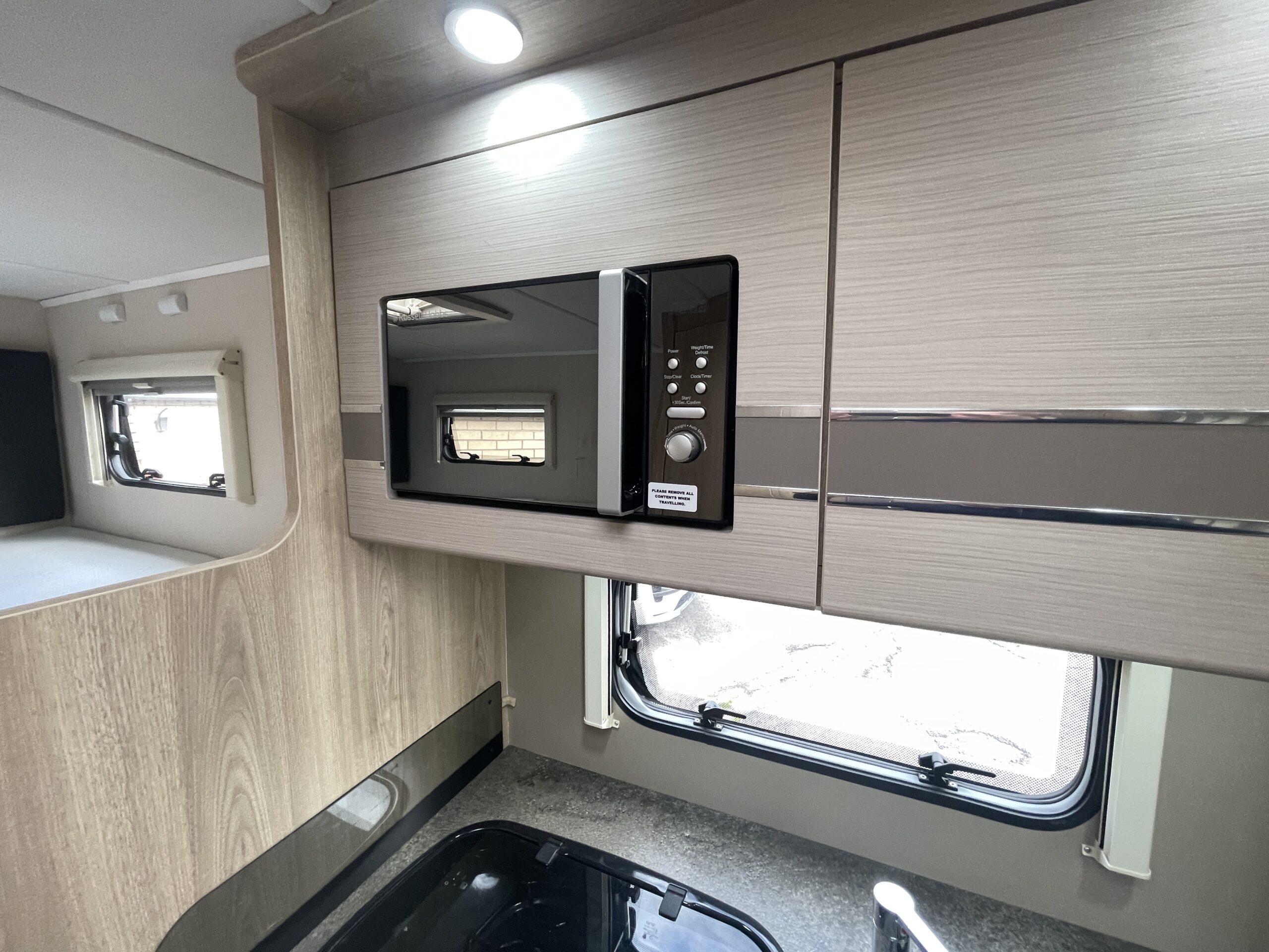 | Equipment | 12V Lighting, 240V Lighting, Alarm, Blinds, Cooker, Double Glazing, Fixed Double Bed, Grill, Hand Washbasin, Mains Hookup, Microwave, Oven, Sink, Sunroof |