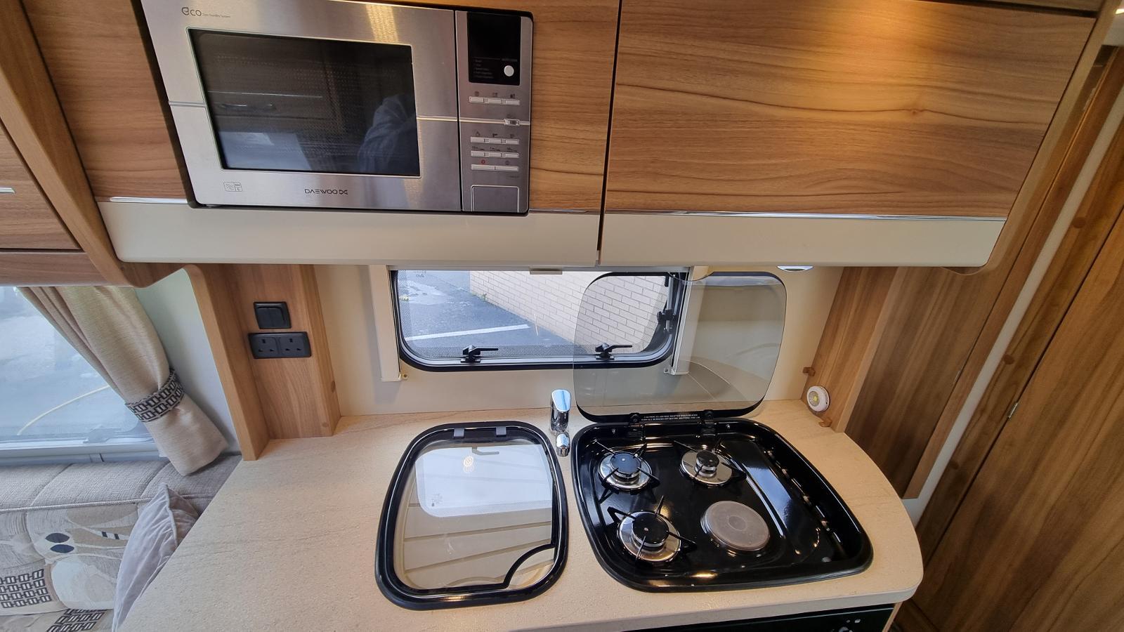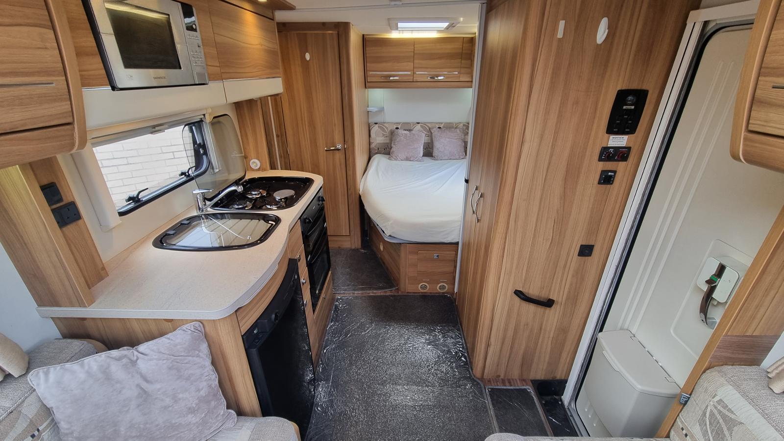 | Equipment | 12V Lighting, 240V Lighting, Awning, Blinds, Central Heating, Cooker, Double Glazing, Fixed Double Bed, Grill, Mains Hookup, Microwave, Oven, Sink, TV Aerial |