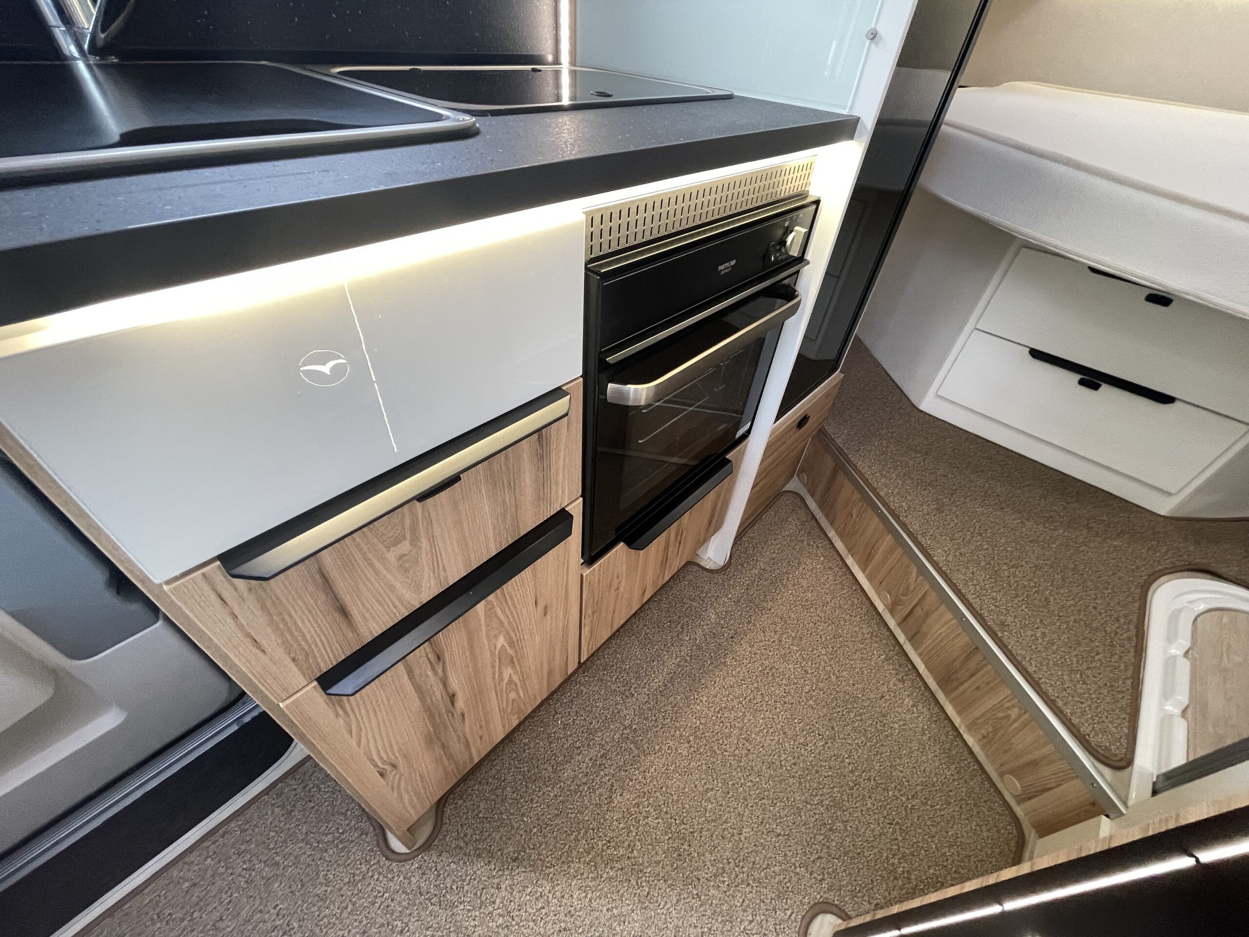 | Equipment | 12V Lighting, 240V Lighting, Alarm, Blinds, Cooker, Double Glazing, Fixed Double Bed, Grill, Hand Washbasin, Mains Hookup, Oven, Sink, Sunroof |