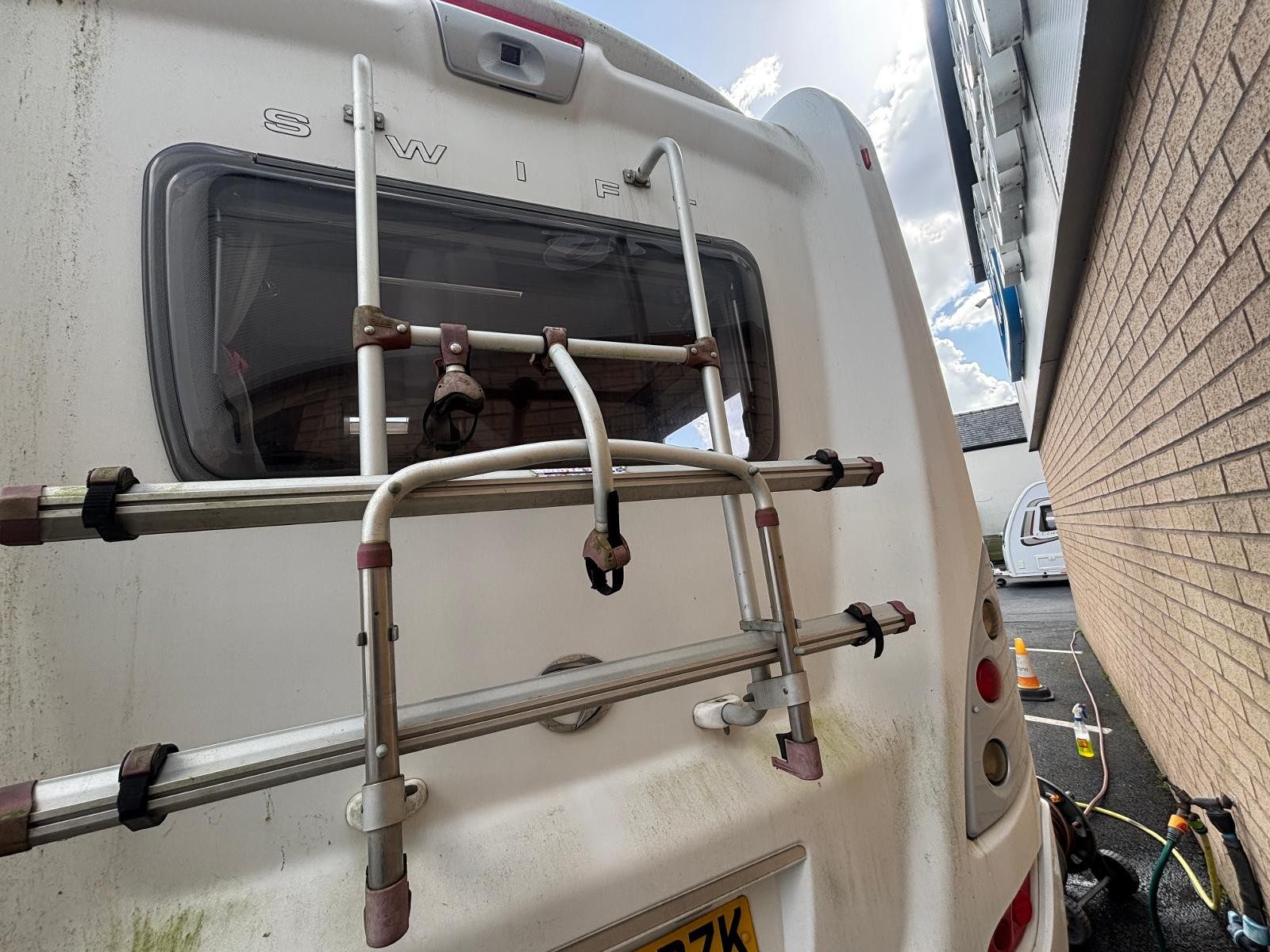 Awning, bike rack, TV