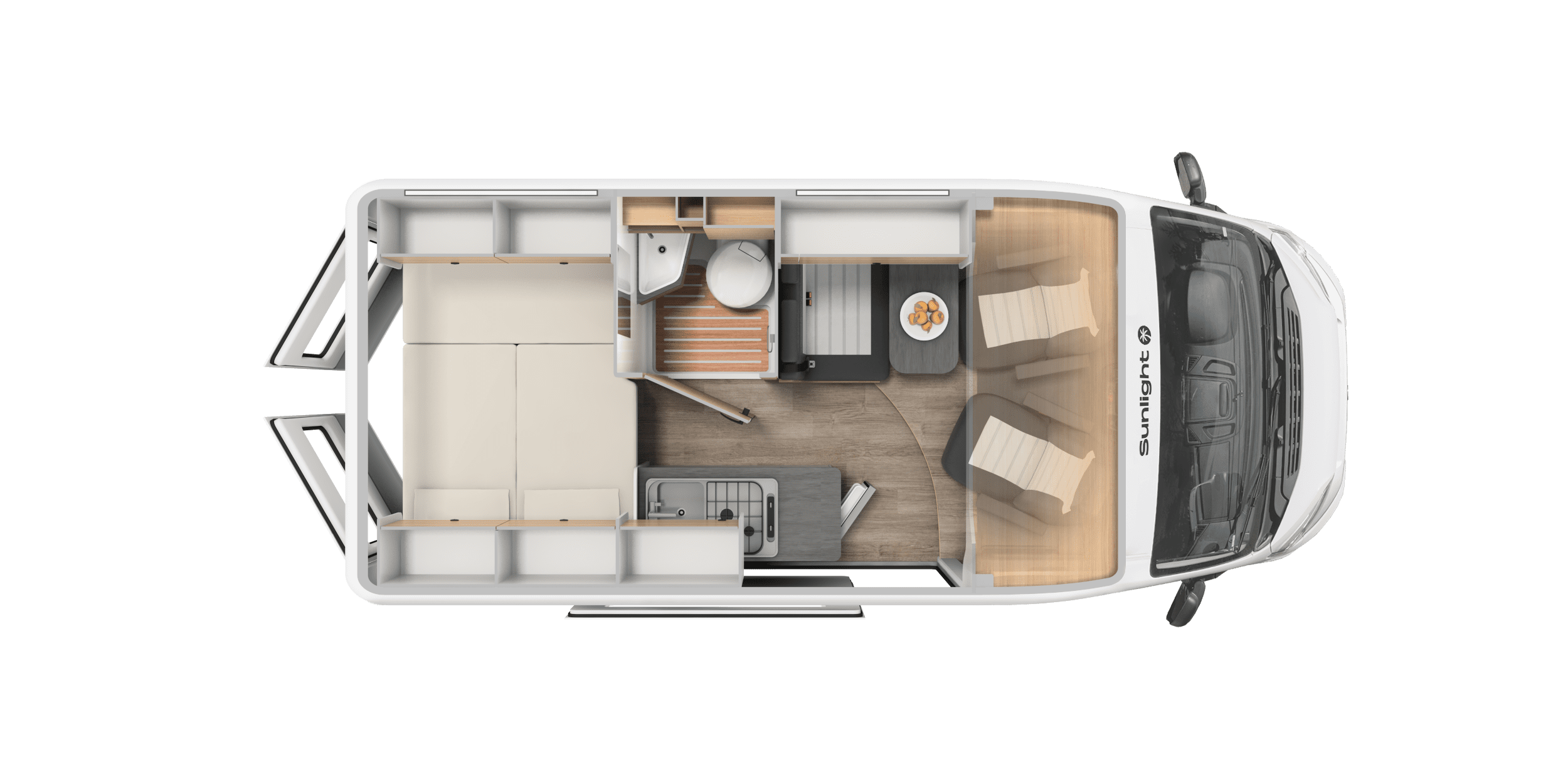 Layout | pop top, Travelling Seats, Dinette, End Bedroom |