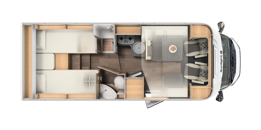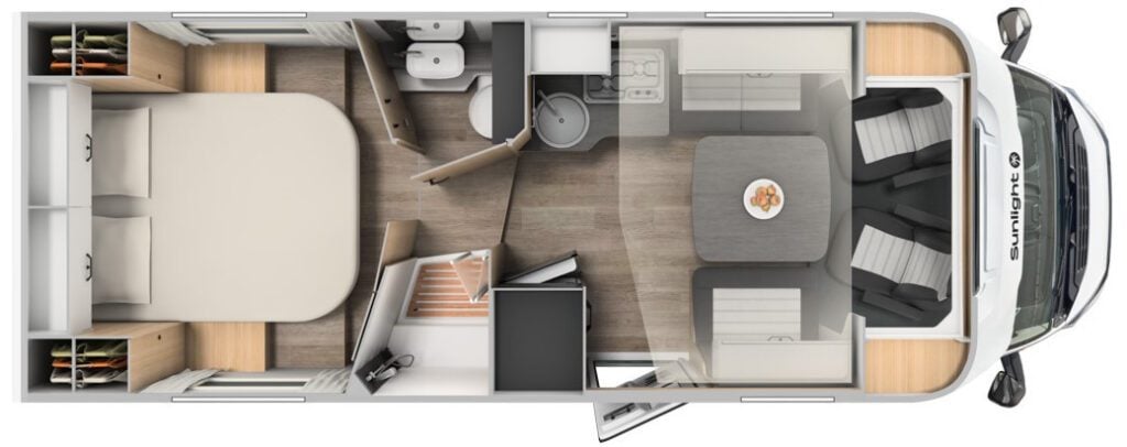 | Equipment | 12V Lighting, 240V Lighting, Awning, Blinds, Central Heating, Cooker, Double Glazing, External Side Lockers, Fixed Double Bed, Hand Washbasin, Mains Hookup, Oven, Separate Shower, Sink, Sunroof |