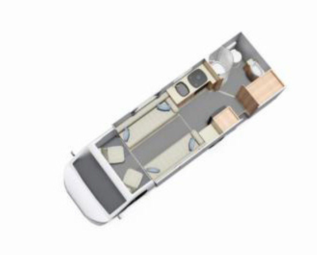 Layout | pop top, Roller Bed, Travelling Seats |