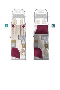 | Layout | Travelling Seats, Drop Down Bed, End Lounge/Bed |