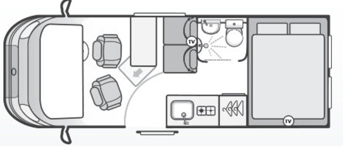 | Equipment | 12V Lighting, 240V Lighting, Awning, Blinds, Central Heating, Cooker, Double Glazing, Fixed Double Bed, Grill, Hand Washbasin, Mains Hookup, Microwave, Oven, Separate Shower, Sink, Sunroof, TV, TV Aerial |