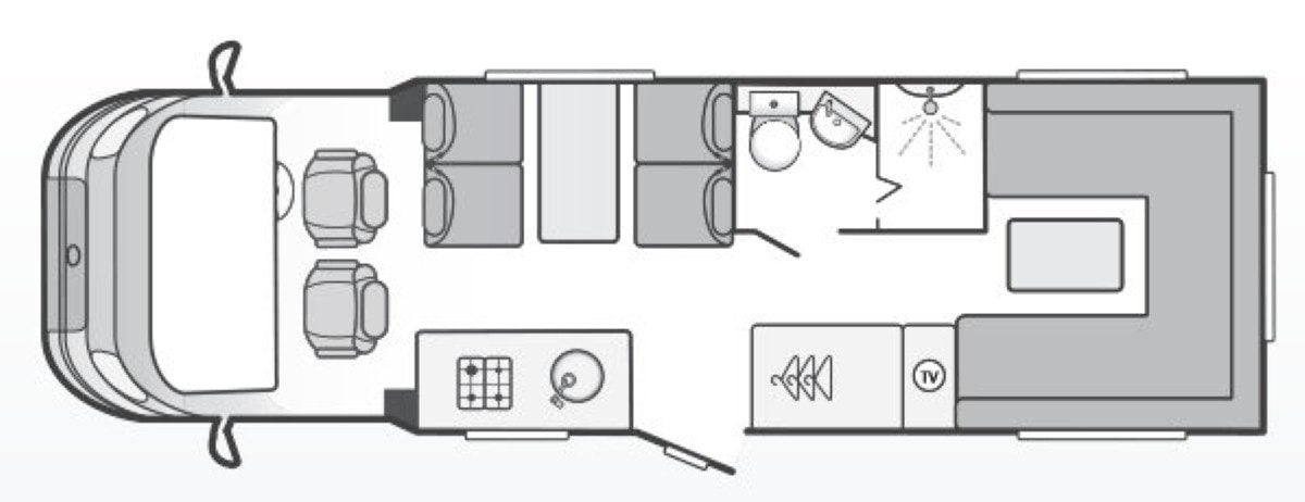 | Equipment | 12V Lighting, 240V Lighting, Awning, Blinds, Central Heating, Cooker, Double Glazing, End Kitchen, Grill, Hand Washbasin, Mains Hookup, Microwave, Oven, Separate Shower, Sink, Sunroof, TV Aerial |