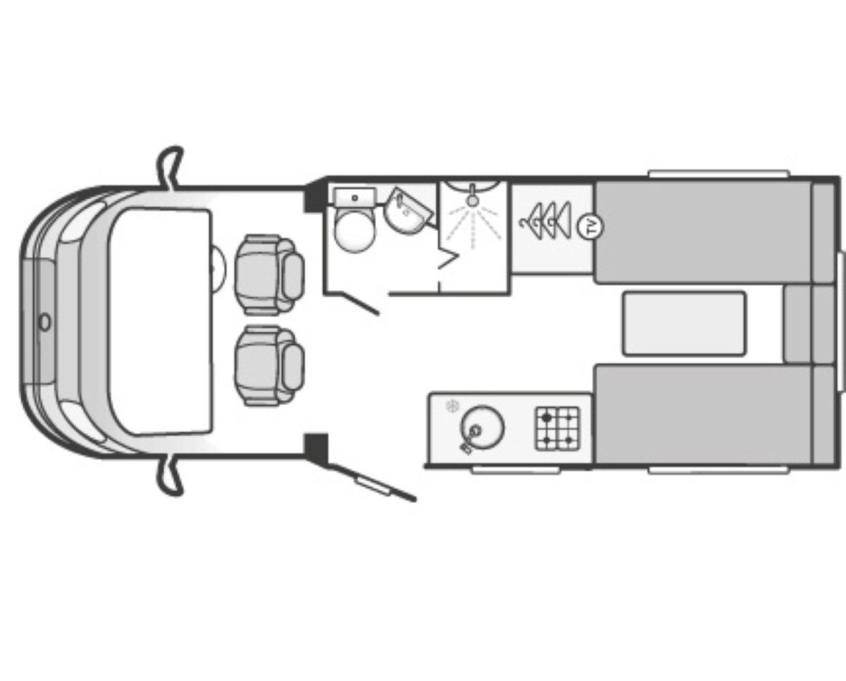 | Equipment | 12V Lighting, 240V Lighting, Awning, Blinds, Hand Washbasin, Mains Hookup, Sink |